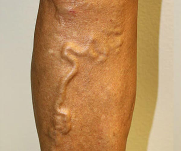 Antes del tratamiento las varices, cada vez de mayor tamaño, se iban haciendo más visibles en la piel. La paciente afectada sufría diversos síntomas: pesadez, cansancio, calambres y dolor.